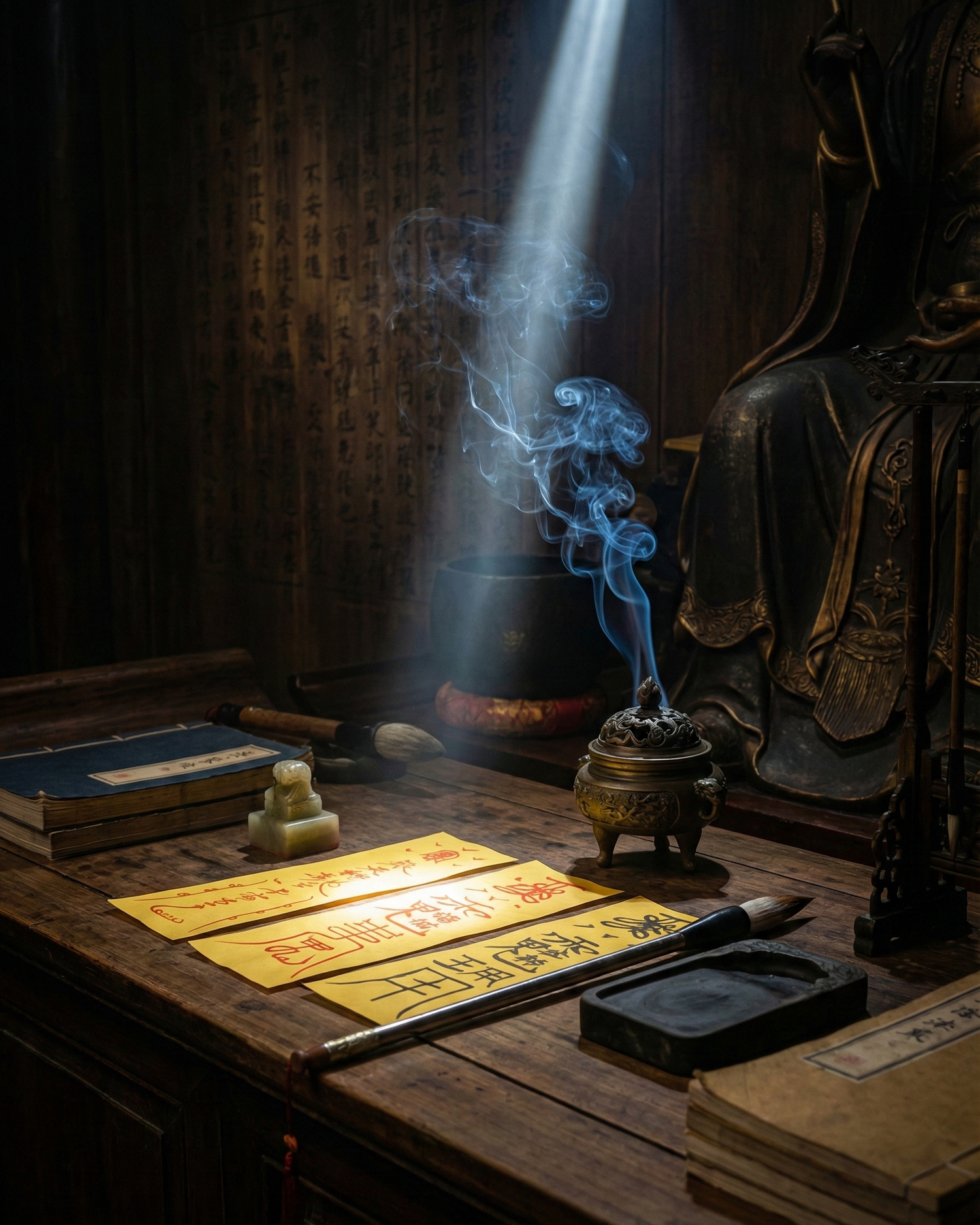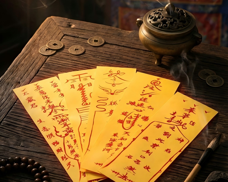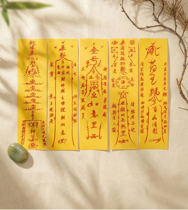 Crafted with premium yellow paper and cinnabar ink, these amulets embody the fusion of ancient Taoist tradition and psychological harmony. Each meticulously designed piece serves as a spiritual anchor.