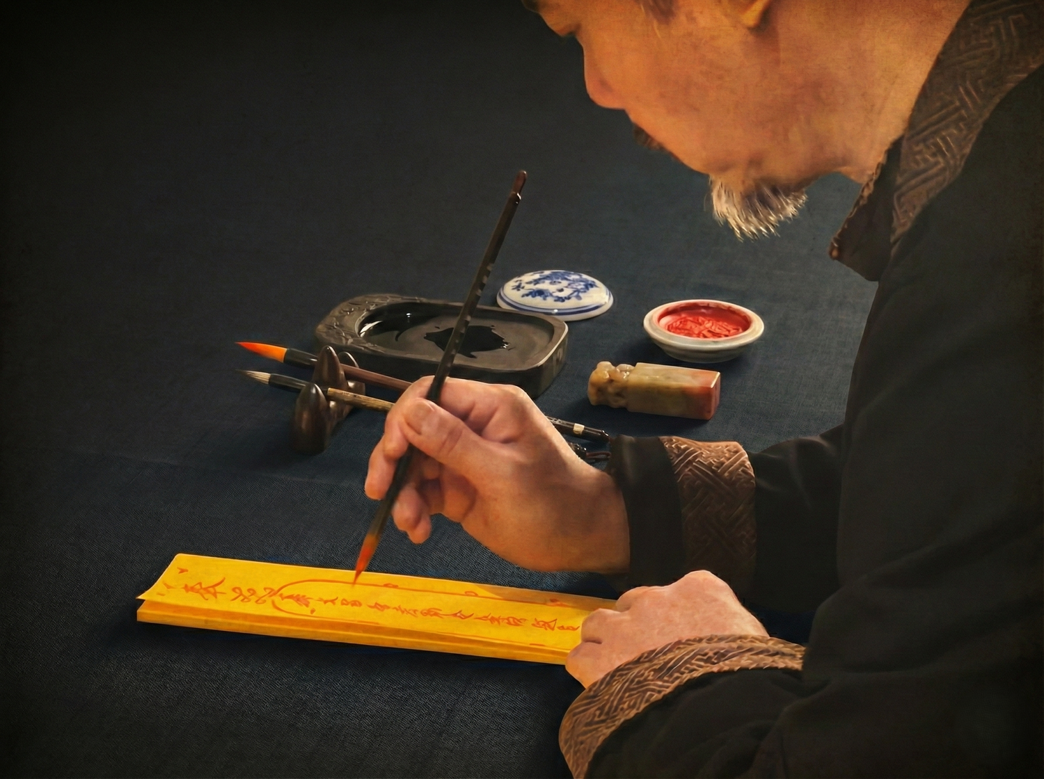 Master Lee Hand-Inscribing Sacred Talismans