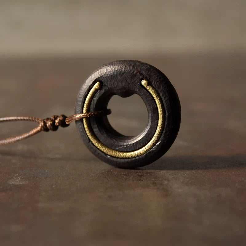 In Taoist symbolism, the perfect circle (圆) represents the "Tao", the infinite cycle of nature, wholeness, and eternal flow. The combination of Black Ebony (wood/earth) and Brass (metal) embodies the balance of Yin and Yang: the wood offers grounding stability, while the metal conducts spiritual clarity and light. Together, this pendant serves as a talisman for:
