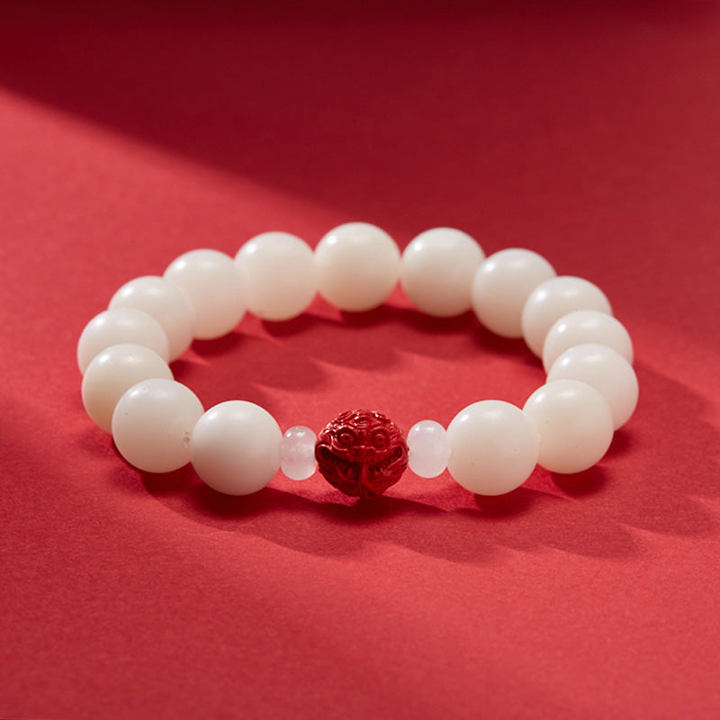 - Material: White Jade Bodhi, Cinnabar, Jade Beads