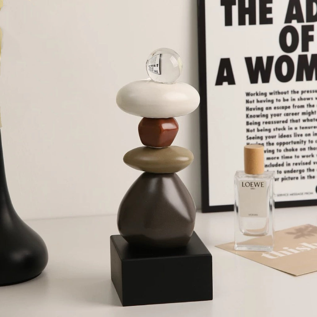 The design masterfully pairs stability with fluidity. On one side stands a sculptural cairn of smooth, resin-crafted "stones," stacked in perfect equilibrium to represent a solid foundation of wealth and career. Crowning this tower is a translucent crystal sphere, symbolizing the clarity of vision needed to seize opportunities. Beside it, a circular Moving Sand Art piece creates a continuous, dynamic flow. With every turn, the colored sand cascades into unique landscapes, symbolizing the endless stream of new possibilities entering your life.
