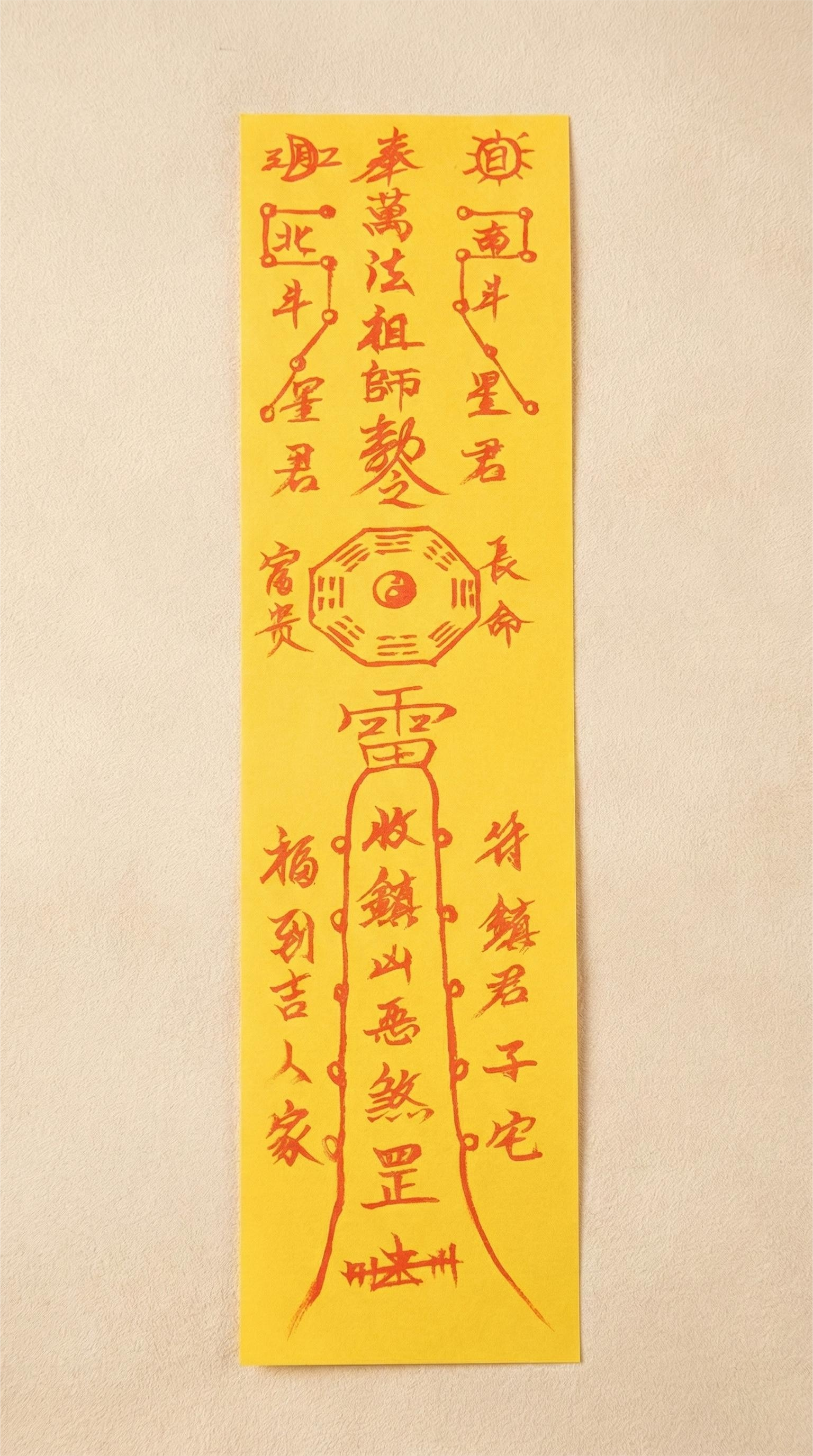 Our Protection Talismans are carefully created Taoist amulets designed to safeguard the wearer from harm, negative energies, and misfortune. Each talisman is hand-inscribed with cinnabar ink on yellow paper, a color deeply revered in Chinese culture for its auspicious qualities and protective symbolism. Cinnabar itself is traditionally believed to neutralize harmful forces and attract positive energy. Every talisman features intricate designs and inscriptions specifically crafted to reinforce protective energies, offering spiritual shielding in daily life and in moments of vulnerability.