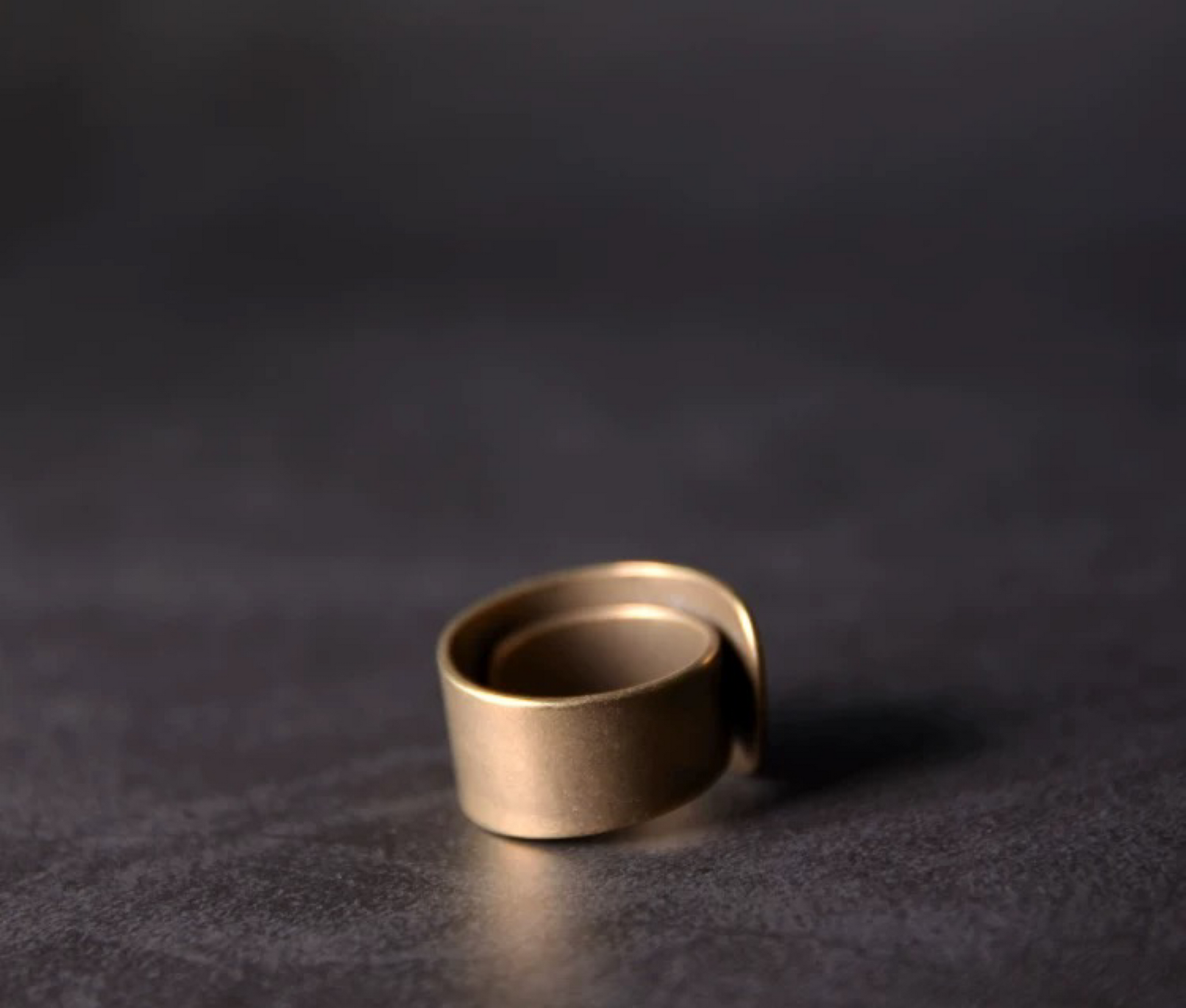 To preserve the ring’s matte golden luster and prevent oxidation, please keep this piece dry. As pure brass reacts to moisture, we recommend removing the ring before washing hands or bathing. When not worn, store it in a dry environment to maintain its condition, treating it with the care due to a spiritual object.